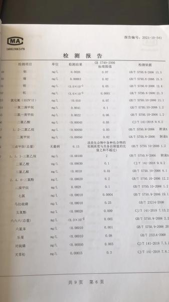 2021年上冈出厂水106项下