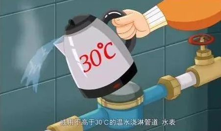 3、对已经冻住的水龙头、水表、水管,用低于30度的温水冲淋解冻。切忌用火烘烤,硬物打砸,也不能用工具强行打开水龙头、水表。