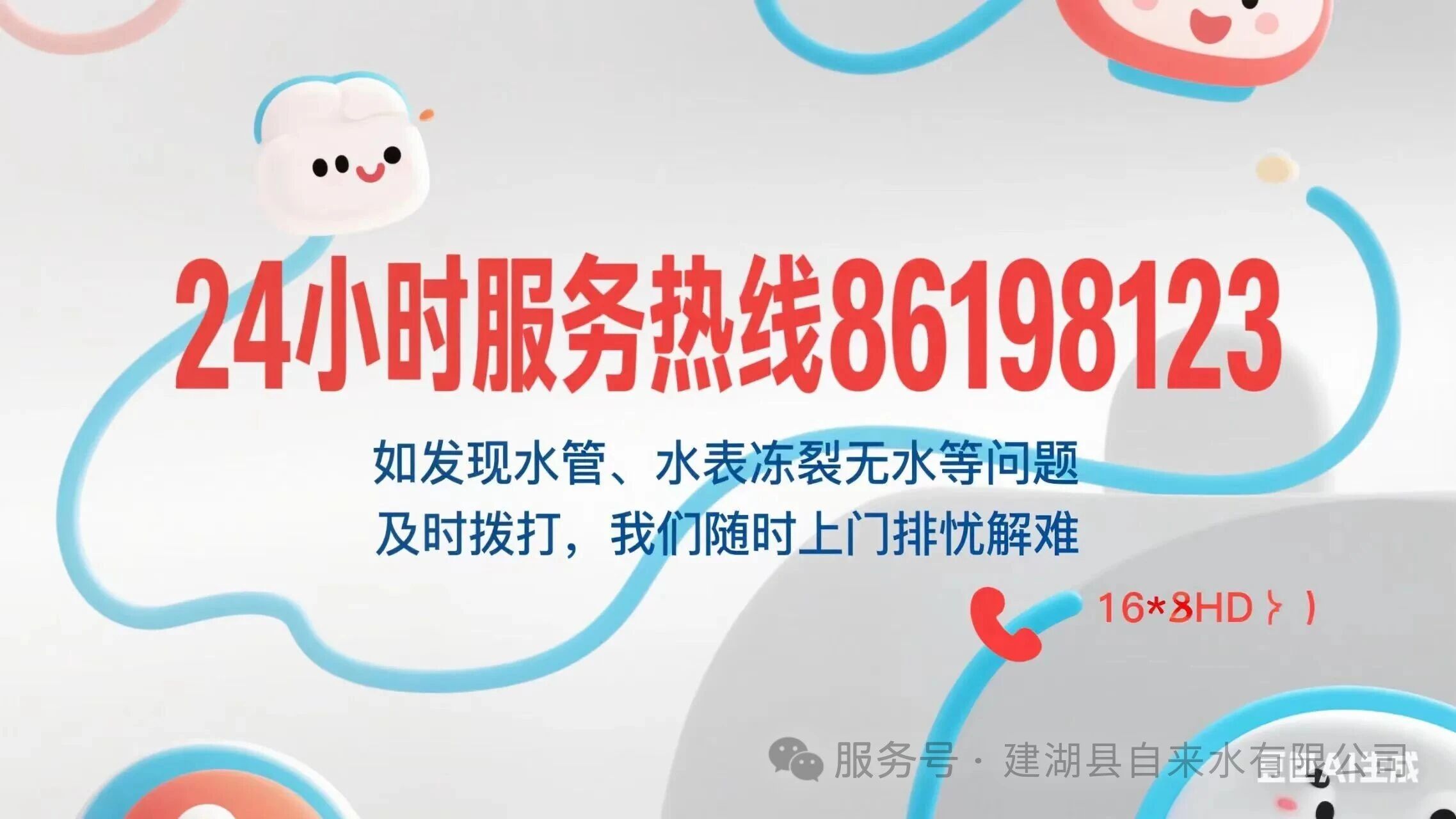如用户发现水管、水表冻裂无水等问题,及时拨打24小时服务热线86198123,我们随时上门帮您排忧解难,确保您用水正常。