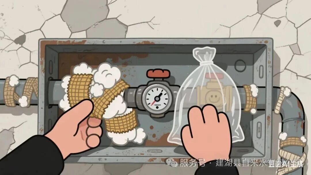 根据气象部门预报,元旦小长假将至的同时,冷空气也将频繁“打卡”。为防止水表、水管冻裂,请广大用水户要及早行动起来,对自家的水表和水管采取一些保温防冻措施,确保冬季正常用水。